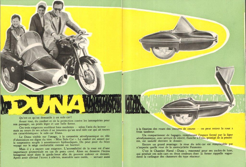 A honvédségi AN típusú aknamentesítő hajók kifutása után merült fel a motorkerékpár-oldalkocsi gyártás ötlete, mely a hajóipari igazgatóság két főosztályvezető-helyettesétől valamint a Pannonia Külkereskedelmi Vállalat igazgatójától származott. A Dunai Hajógyár területén külön egység jött létre a prototípus és a gyártás előkészítésére. Itt dolgozott Guti Lajos kocsiépítő, aki az Uhri testvérek műhelyében, majd annak utódjánál, az Ikarusnál dolgozott olyan elismert szakemberekkel, mint Michelberger Pál. Guti Lajos alakította ki az oldalkocsi formáját szem előtt tartva, hogy sajtolhatóak legyenek a főbb elemek.