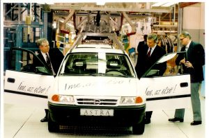 A GM csapata ennek megfelelően magas rangú magyar vendéget környékezett meg azért, hogy az ünnepi eseményen levezesse az első magyar Astrát. Közben a cég első magyar alkalmazottja, Dános András a sajtómeghívásokat szervezte, a kormányzati kapcsolatokért felelős Fodor Zsolt azért lobbizott, hogy a magyar miniszterelnök üljön a volánnál. Nem ment könnyen, mert a visszahúzódó Antall József nem kedvelte a ceremóniákat, de végül hatott az érvelés, melyben példaként hozták fel neki, hogy az által is tisztelt német kancellár, Helmuth Kohl fél évvel korábban felavatta az Eisenach-i Opel gyárat. A konzervatív kereszténydemokrata uniós (CDU) politikus példáját követve Antall József végül elfogadta a szentgotthárdi felkérést.