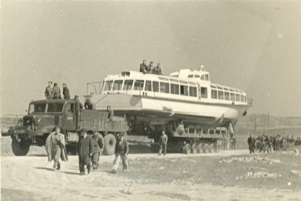 1955-ben kezdték tervezni a vízibuszt, melyből 1956 tavaszán adták át a MAHART-nak az elsőt. Készült még további 35, ezek többsége a hajóregiszter szerint napjainkban is közlekedik, de jutott a vízibuszokból csehszlovákiai víztározókra és 1958-ban közúton szállítottak egyet az ausztriai St. Wolfgang See-re is, ahol két híd szerkezetét is átépítették, hogy átférjen a hajószállító járműszerelvény.